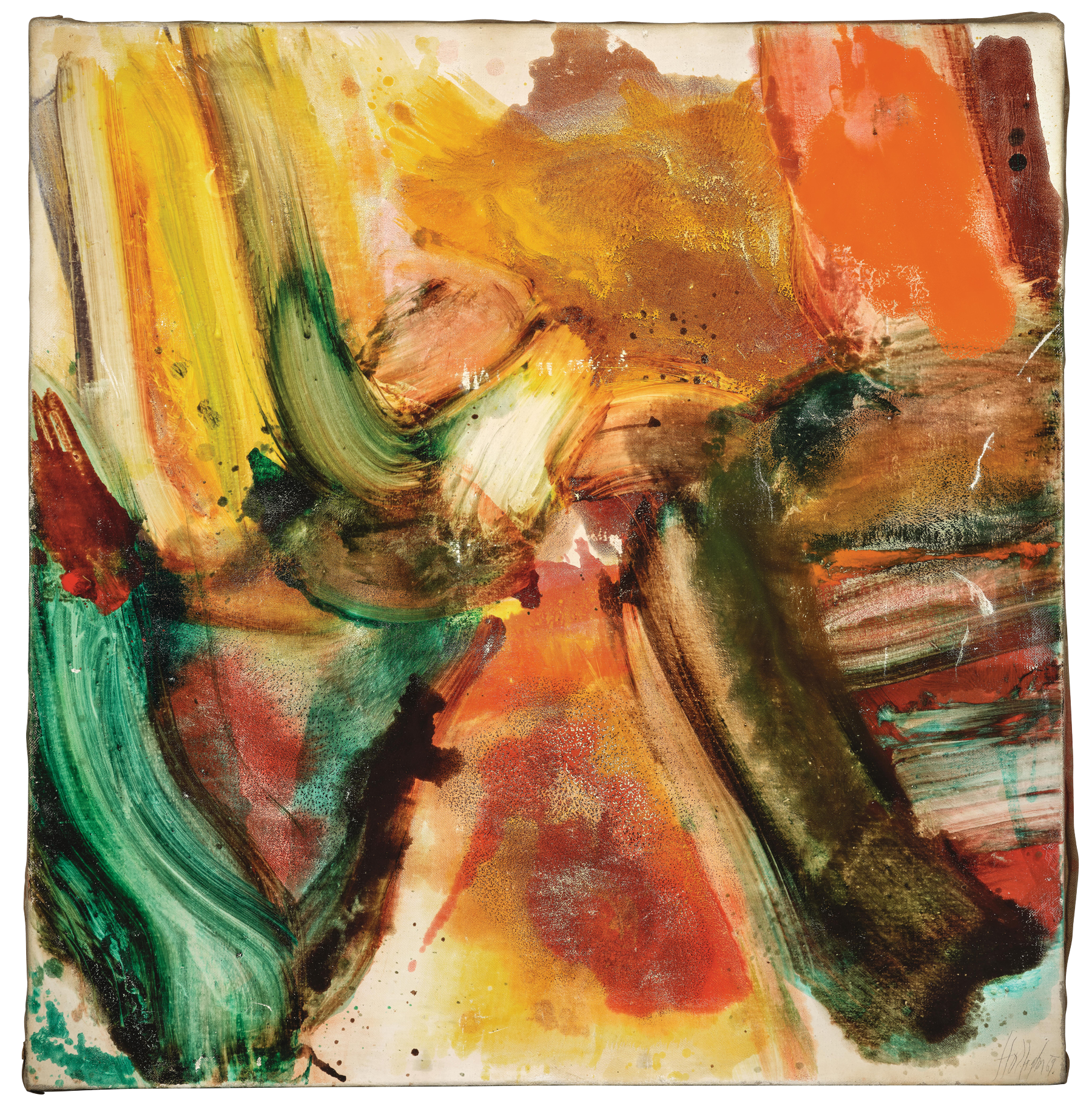 In the seclusion of the Styrian landscape, he developed an intense and independent painting practice over six decades, combining his very personal path to abstraction with the dynamism and movement of his American colleagues. Works such as Untitled (1969) from the collection exemplify this synthesis and reveal his artistic stance: in observing nature, the dialogue between figuration and abstraction begins for the painter. As he stated, ‘‘If I didn’t have the visible as a starting point, what I do would be purely arbitrary scribbling. I need the visible as a starting point in order to change it.’ [1] This approach forms the foundation of his work.